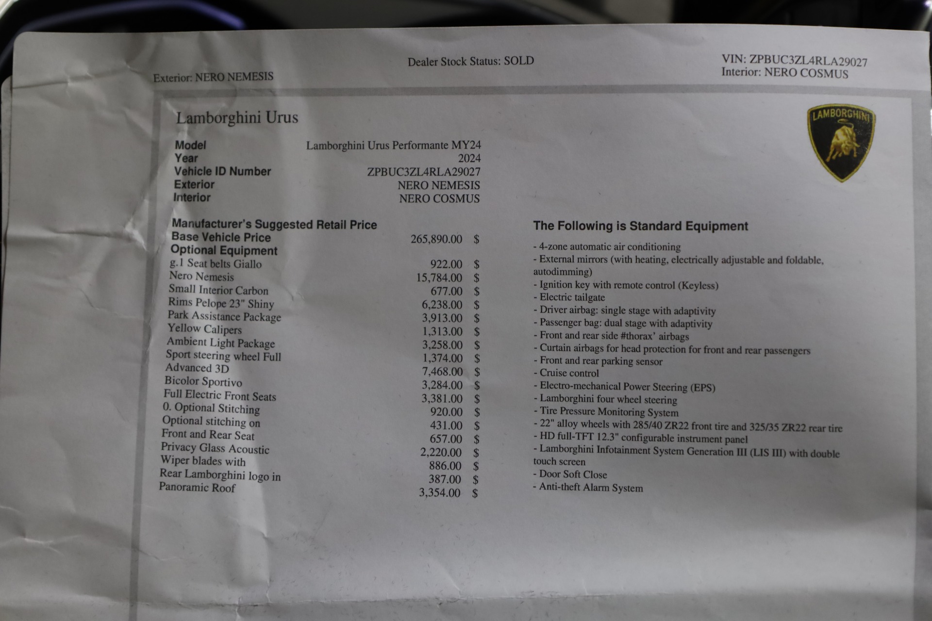 $15,784 Nero Nemesis Paint. 327k MSRP New! 23" gloss black wheels with optional Yellow calipers. Features park assistance package. Advanced 3D package. Panoramic Roof and Acoustic Privacy Glass. Interior ordered in Nero Cosmus with Bicolor Sportivo interior in optional Giallo (yellow) featuring contrast stitching. Seat belts ordered in Giallo. Ambient lighting package. Interior carbon fiber package. Sport steering wheel in full leather. Full electric front seats. Loaded with options and vehicle is brand new! This Vehicle is NOW AVAILABLE on the Pre-Owned Market. Our 26,000 Sq. Ft. Private Showroom is Discretely located In The Suburbs Of Princeton, New Jersey. Our Facility includes our Supercar Showroom, Vehicle Storage, Full Service Center, & Auto Spa. We also offer Paint Protection Film Installation, Vinyl Wrapping, & Window Tinting, ALL IN THE SAME PLACE! Located 60 Miles From New York City & 20 miles From Philadelphia. Easy To Get To From Any Of The Major Airports or Trains. Contact us to Schedule an In-Person Or Virtual Car Appointment. Ask About Our Lease, Finance, & Even Warranty Options. We also offer Competitive and Fair Value For ANY Trades for a seamless transaction! SAFE, RELIABLE, & HASSLE-FREE SHIPPING AVAILABLE ANYWHERE WORLDWIDE! WE BUY ALL CARS! ONE OR THE ENTIRE COLLECTION! Call (609) 239-7800 OR EMAIL
